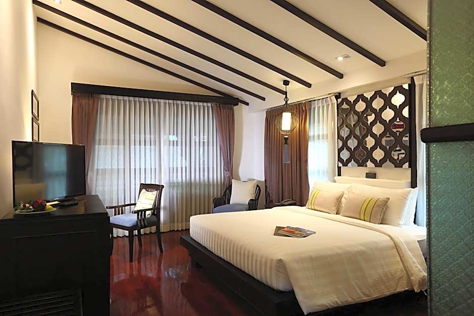 ROMANTIC LANNA DELUXE is 334 square feet and includes either a king-size bed 150-183 width or 2 single beds 80-130 width plus balcony, desk, satellite tv , cable tv, hairdryer, tea and coffee making facilities , safe, bathrobes, and slippers.